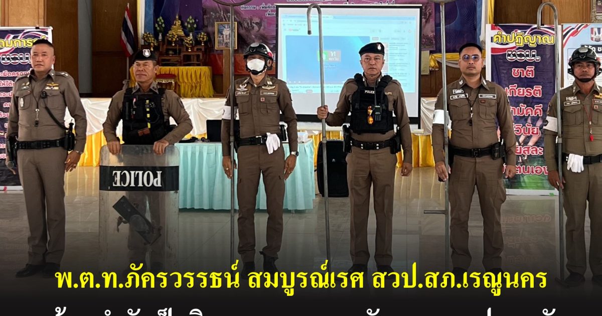 พ.ต.ท.ภัครวรรธน์ สมบูรณ์เรศ สวป.สภ.เรณูนคร พร้อมกำลังเป็นวิทยากรอบรมชุดรักษาความปลอดภัยหมู่บ้านอำเภอเรณูนคร