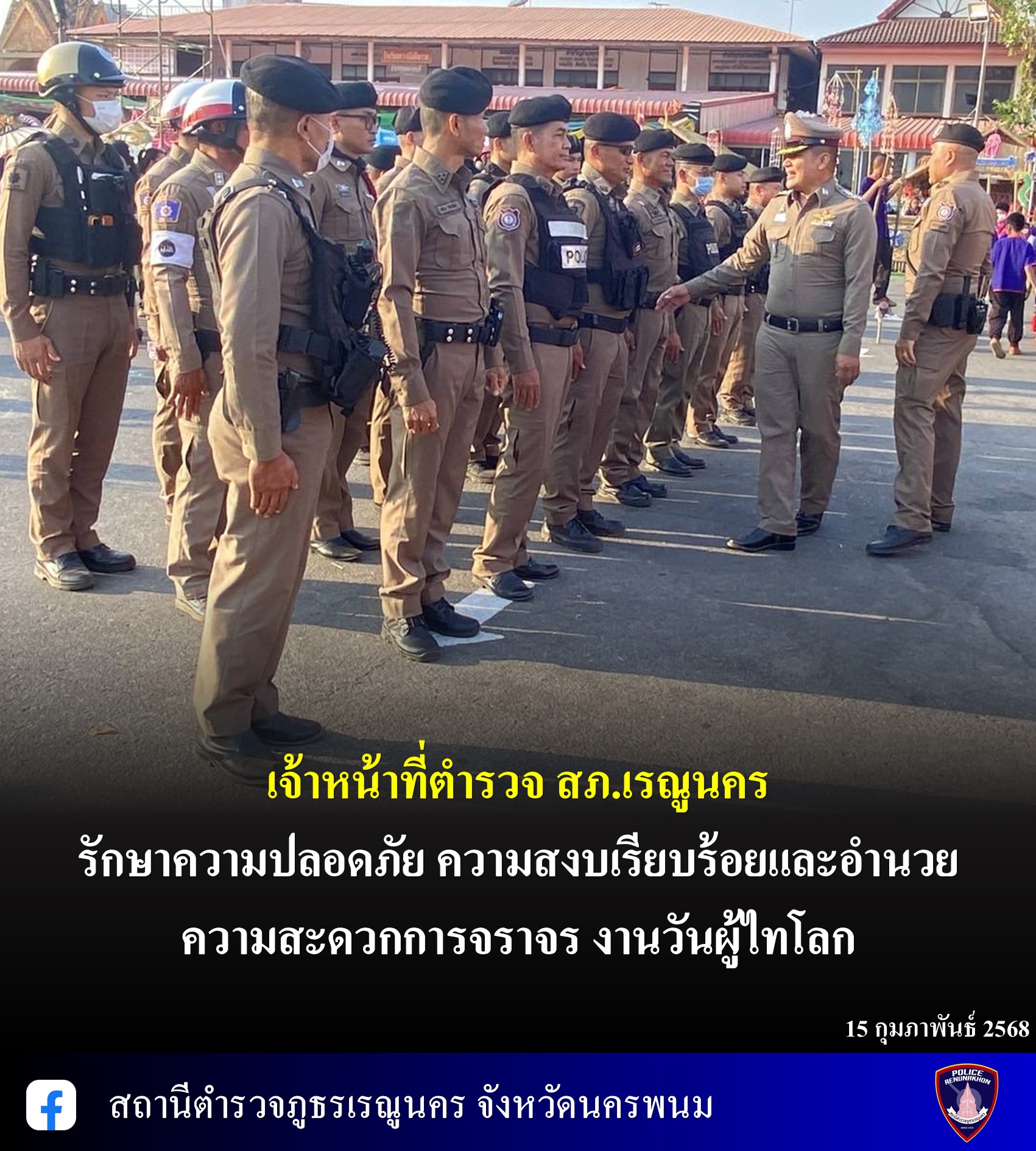 วันที่ (15 ก.พ.68) #วันผู้ไทโลก พ.ต.อ.ศักดิ์ดา นาคประสิทธิ์ ผกก.สภ.เรณูนคร พ.ต.ท.ภัครวรรธน์ สมบูรณ์เ
