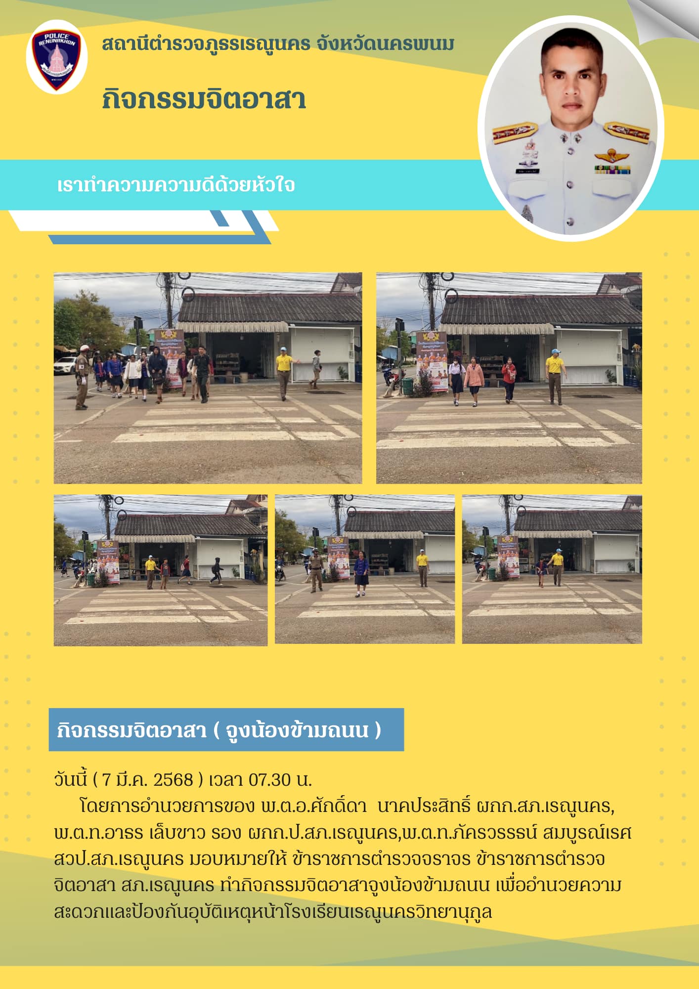 วันนี้ ( 7 มี.ค. 2568 ) เวลา 07.30 น. โดยการอำนวยการของ พ.ต.อ.ศักดิ์ดา นาคประสิทธิ์ ผกก.สภ.เรณูนคร,