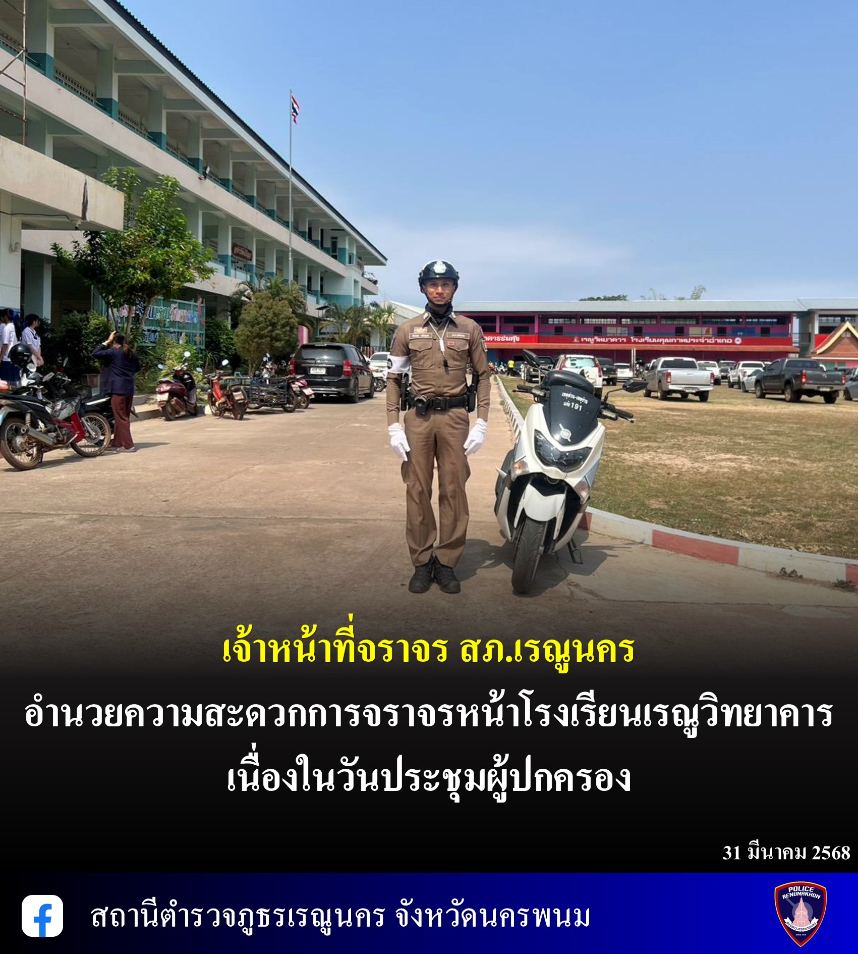 วันทึ่ (31 มี.ค. 68) เวลา10.00น. จ.ส.ต.อัครเดช กลิ่นอุบล ผบ.หมู่(ป.)สภ.เรณูนครอำนวยความสะดวกการจราจร
