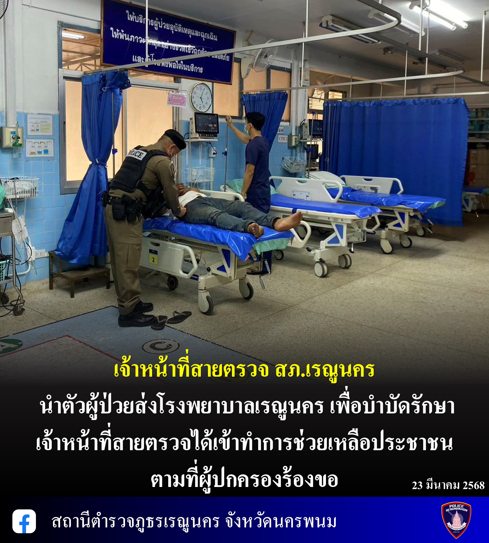 วันที่ 23 มี.ค.68 เวลา17.15น. ชุดสายตรวจ สภ.เรณูนคร ออกให้การช่วยเหลือ นำตัวผู้ป่วยส่งโรงพยาบาลเรณูน